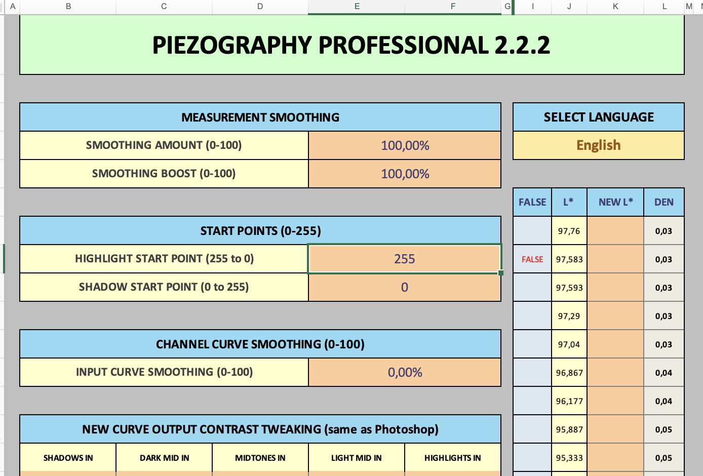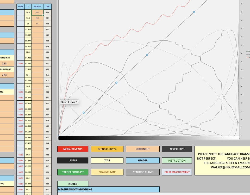 I noticed in the xls you sent that you have created your own starting curve which is neither a Piezography Pro curve nor a legacy K6 curve… but your own using standard K6 shades.