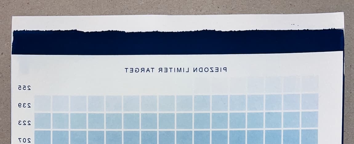I print the TARGET with the P2-PiezoDN-Cyanotype.quad let it dry overnight and make a cyanotype with the standard exposure time from STEP 1 and the same amount of sensitiser, development, clearing, …