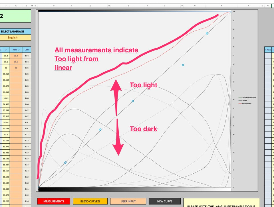 Ok, based on your spreadsheet, I think you’re trying to figure out how to linearize or calibrate your output but only have access to a spectro but you want to devise some model instead based on densitometry.