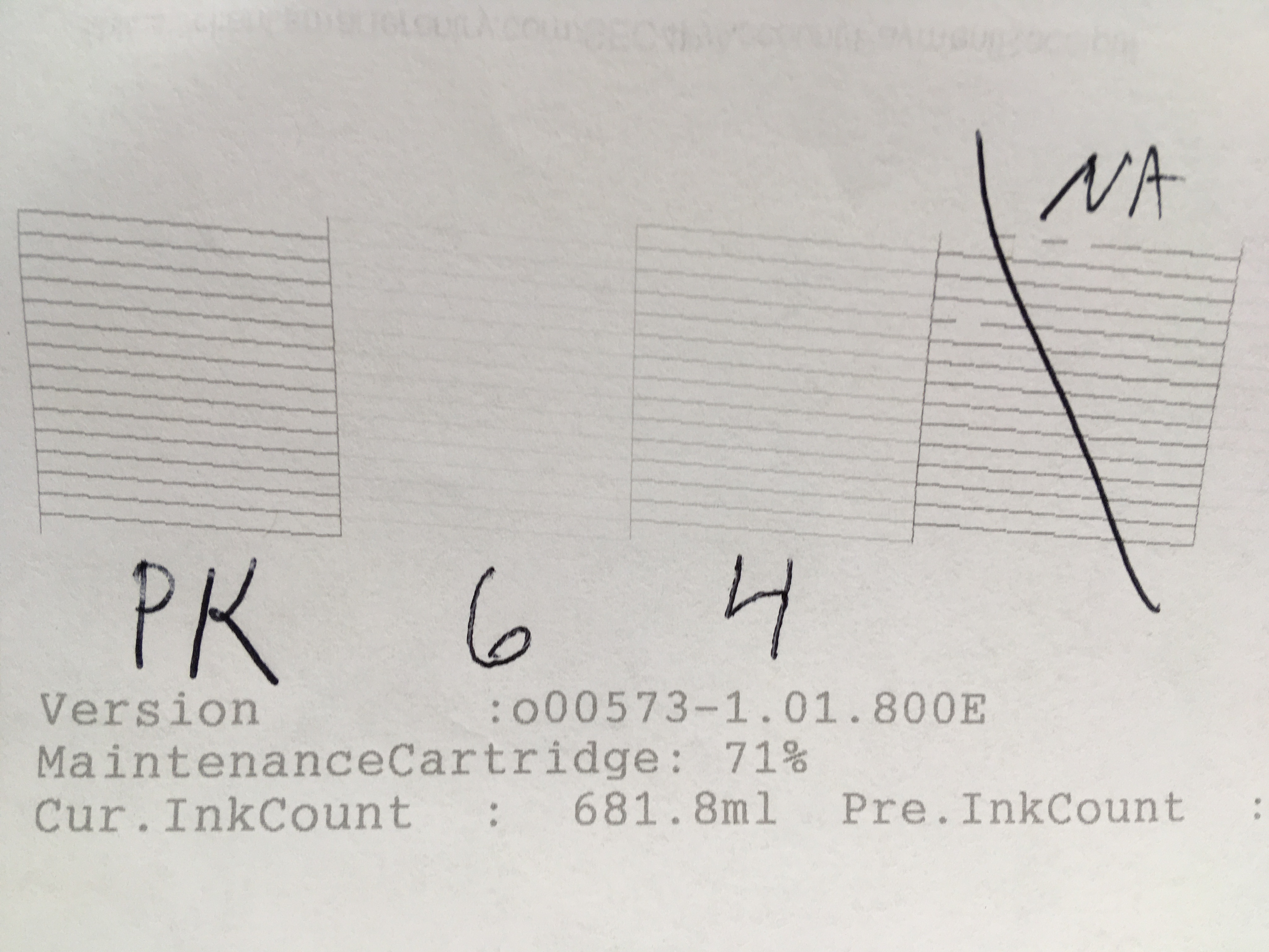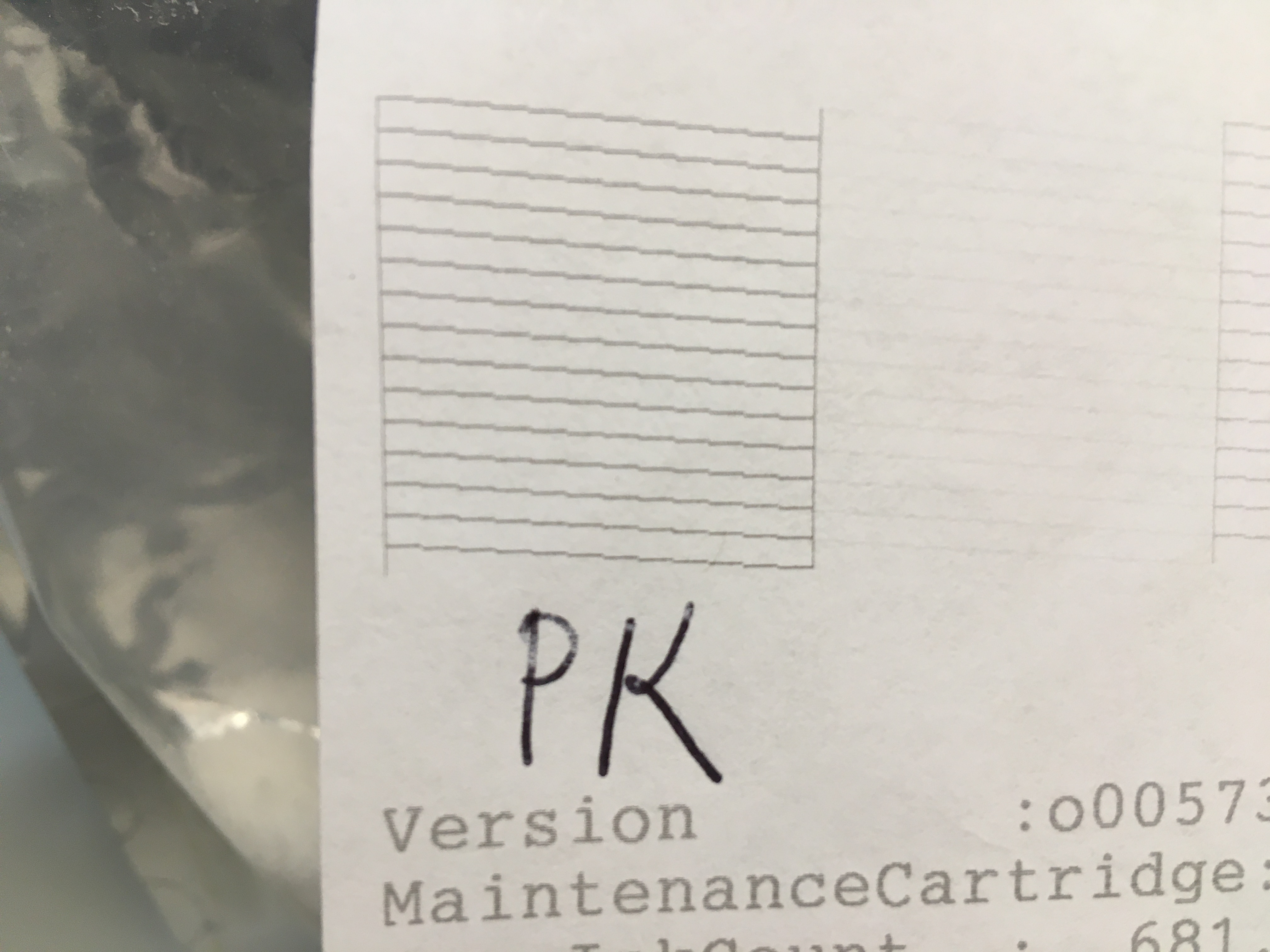 Can you tell me what it is that you are seeing? Something on the photo of my neg, or something on the photo of my nozzle check? The photo of the lines on the neg was hard to take, and I had to get a light glare to hit it just right to even make them show.