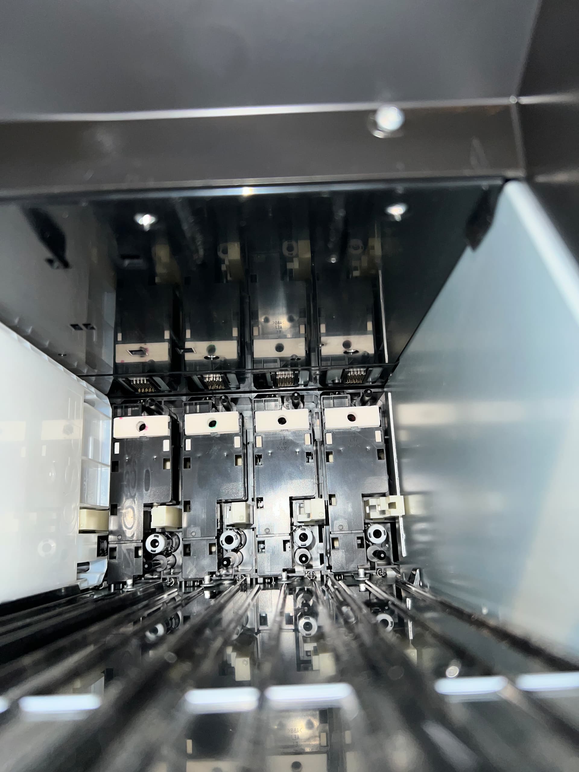 This pattern strongly suggests a potential issue with the chip reader inside the green ink cartridge slot. It’s possible that the pins responsible for reading the chip on the cartridge are damaged and therefore unable to establish communication once the cartridge is inserted, leading to the “cannot be recognized” error.