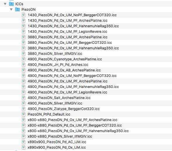 I must have missed something. I created an ICC profile and drug it into the Applications>Piezography>ICCs.>PiezoDN file. The file name is 4900_PiezoDN_JH_Pt_Pd_Arches.icc. When I attempt to print from Print Tool, the ICC does not show up. All of the other ICC’s in the file do though. Have I missed a step? Thanks for your help.