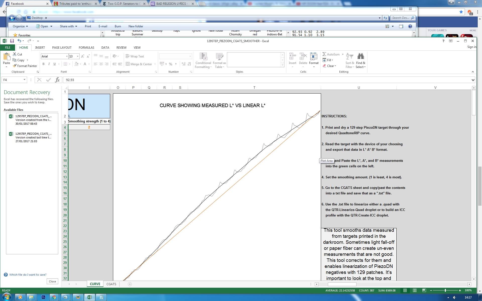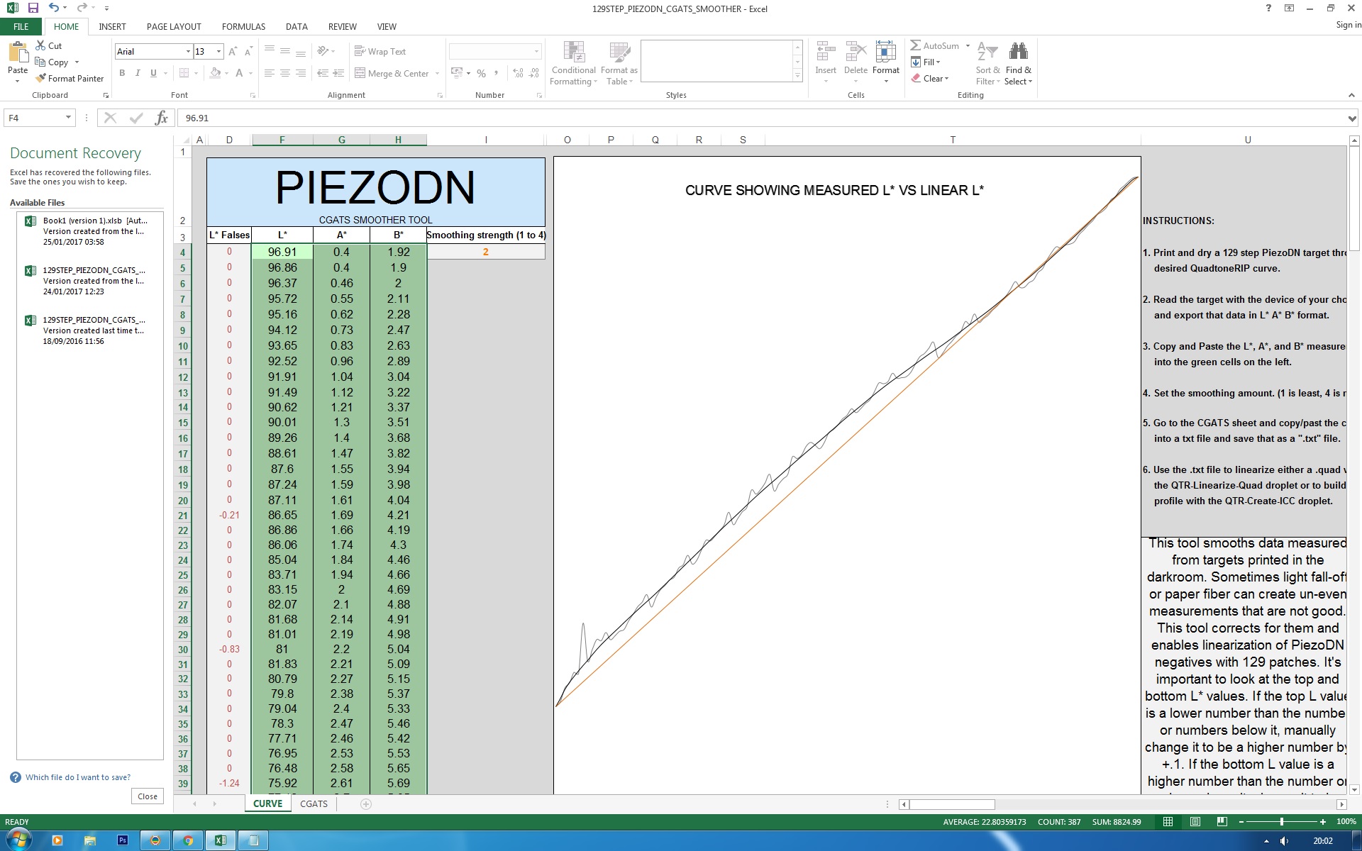 The difference in density between the second measured values and linear is the difference between 60% humidity and 40% humidity (second print at 40%) as I have observed it. If there was a difference in humidity between the first and second linearization prints than this could very well account for the difference in luminance.