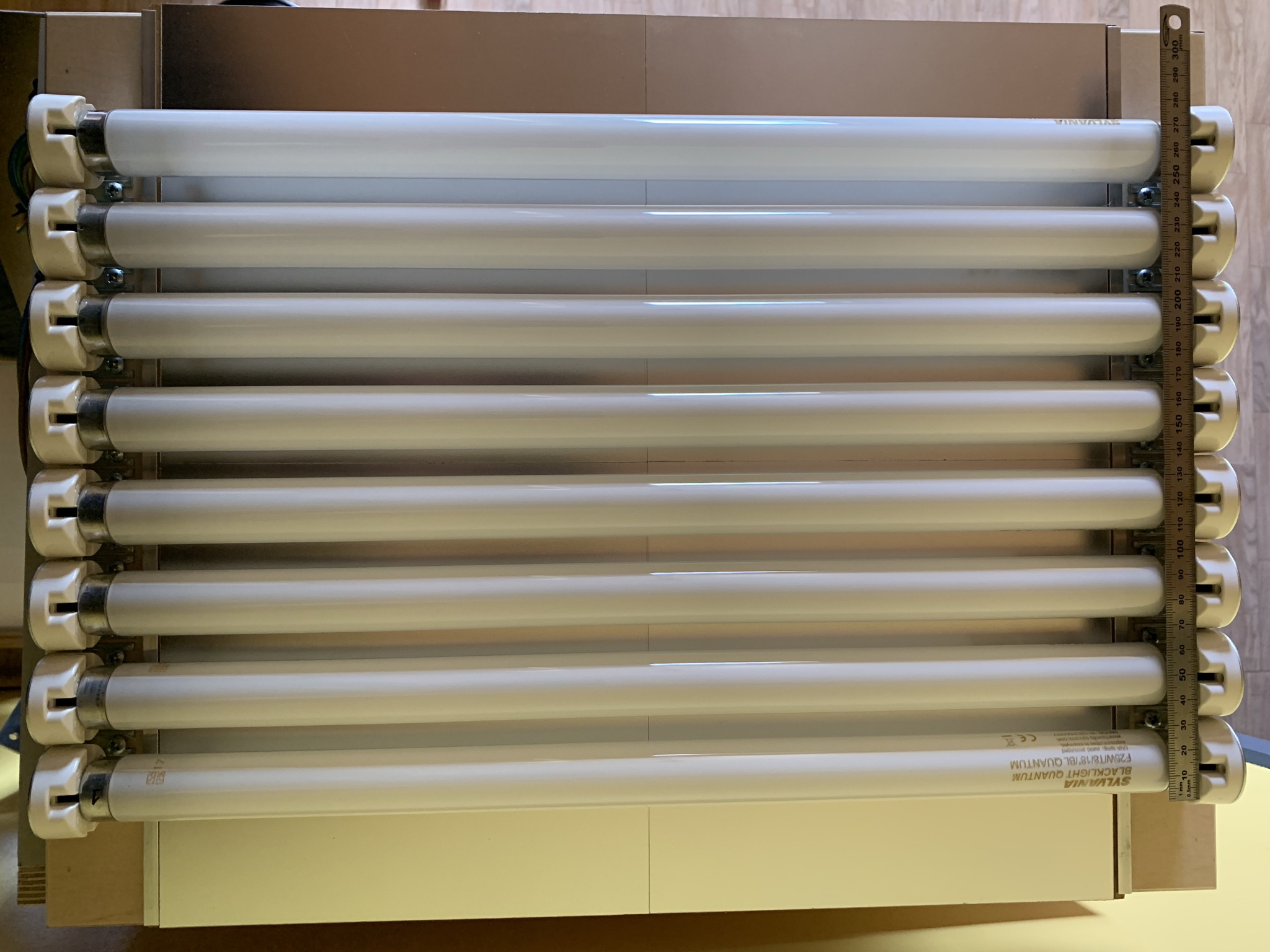 8 x 25 Watt (fluorescent tubes 450 mm) // Sylvania T8 BL368 18 Toughcoat™