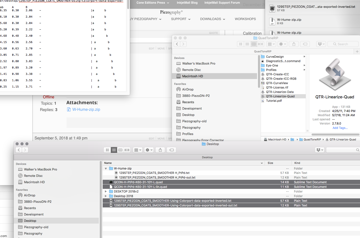 I printed the colorport target image for iI Pro, managed to enter the values into the 129STEP_PIEZPDN_CGATS_SMOOTHER excel tool, from which the resulting txt file and original quad file were dragged onto the QTR-Linearise-Quad droplet. The result was the attached “out” file but no linearised quad file. Nor can I find it anywhere on my windows 10 computer.