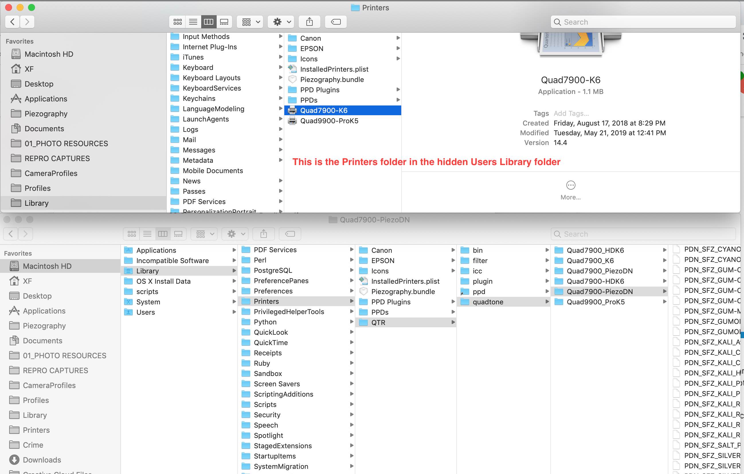 So the master curve for DN was posterizing badly using the classic test chart with 16bit gradient, and I had a reference version from a while ago that did not exhibit this, so I reinstalled QTR to no avail. Per Walker’s suggestion, I just deleted the whole QTR folder from applications, and from the Library>Printers folder, then reinstalled QTR again, but after adding the printers and going through the install commands etc, the QTR folder is now missing entirely from Library>Printers… curves show up in Print-Tool, but this is disconcerting, and also, there are old curves I need to delete but can’t because I’m assuming stuck in some weird hidden QTR folder.