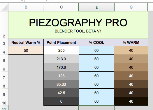 This has now turned the blender tool into a “limiting” tool. If cool is set to 100 then everything will be normal (100% ink printing) but if you set the cool number less than 100 this will print with correspondingly less ink. I suggest setting all the cool numbers at 75% (75% of ink) and running a print test.