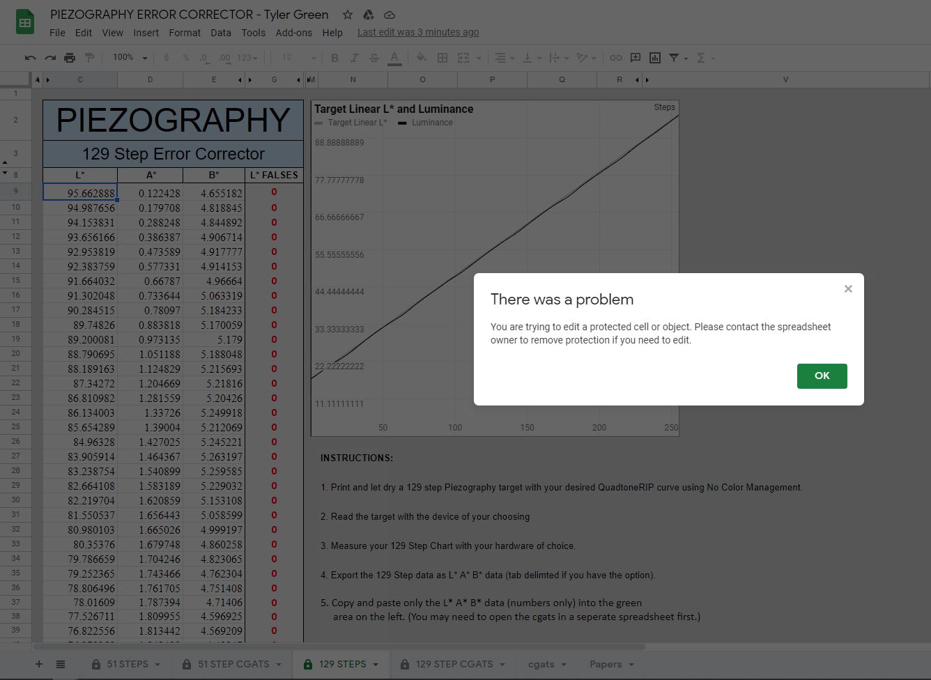 I noticed I stopped being able to use the 129 linearization Google sheet, any idea what happened?